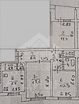 жилая площадь 38,9 кв. м. (три раздельные комнаты площадью 17,2 кв.м., 11,4 кв.м. и 10,3 кв.м..);