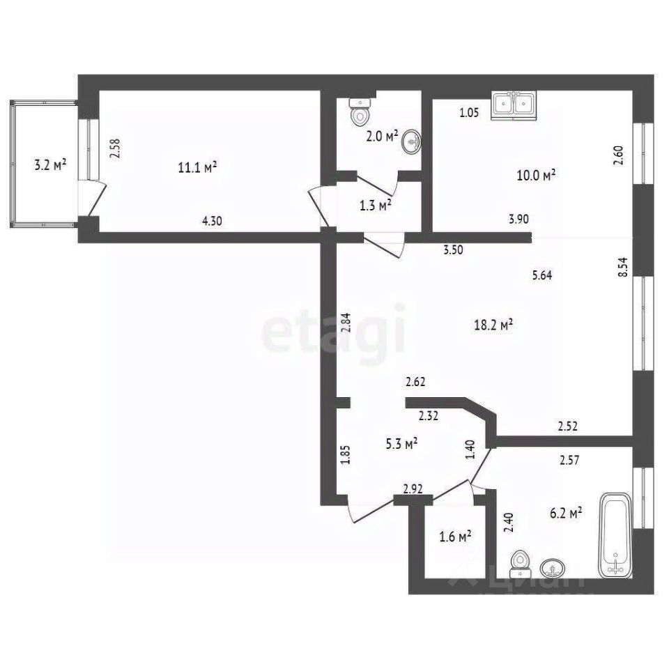 Объект отличается продуманной планировкой: изолированные комнаты, практичная кухня площадью 10 м² и раздельный санузел. Высота потолков 2,6 метра создает ощущение простора и позволяет гибко зонировать пространство.