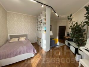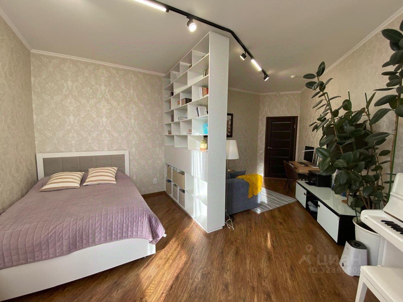 просторная комната (22,5 м2) зонирована на спальню и гостиную;
