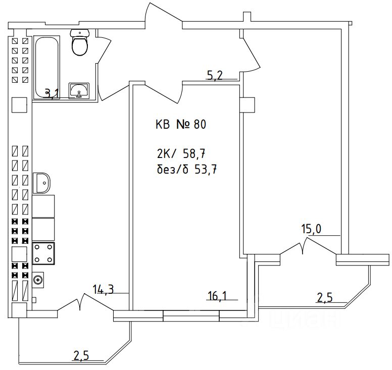 Общая площадь58,7 м²