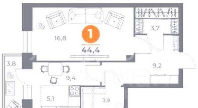 44,4 м²