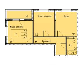 57,9 м²