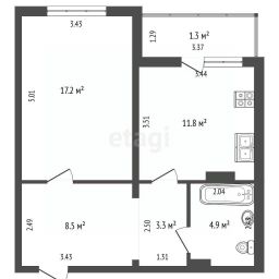 Просторная комната (17,2 м²): Светлая и уютная гостиная, где найдется место для отдыха, работы и приема гостей.