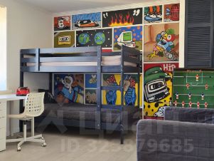 Для детей: просторная детская комната с функциональной мебелью, уникальное графити на стене.
