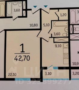 Продается 1-комнатная квартира в ЖК "Акварель", комната разделена на 2 равных по площади комнаты (по 11 кв.м.) - отличное решение для семьи с ребёнком.