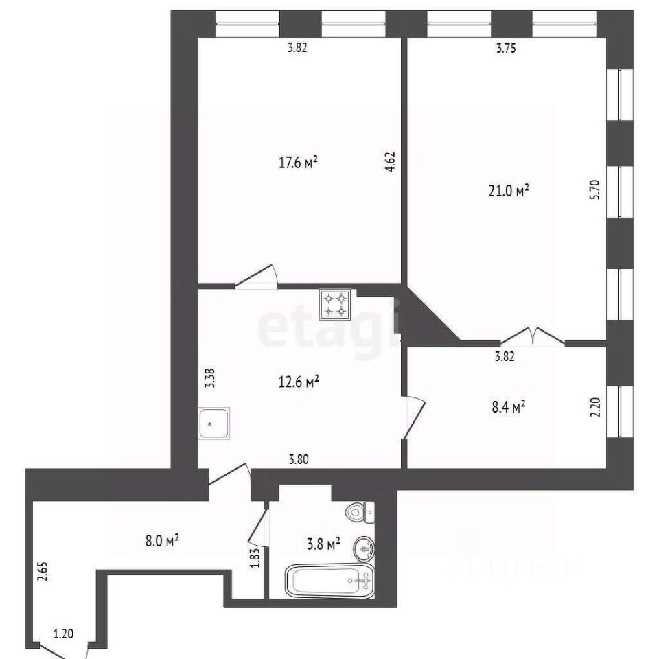 Квартира трёхкомнатная,комнаты раздельные! При желании можно сделать перепланировку(количество окон позволяет)