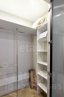 - Удобство хранения: В квартире расположены две просторные гардеробные комнаты с закладными для возможной установки дополнительных систем хранения. Также есть вместительный шкаф с подъемным механизмом внутри — много места для хранения вещей.