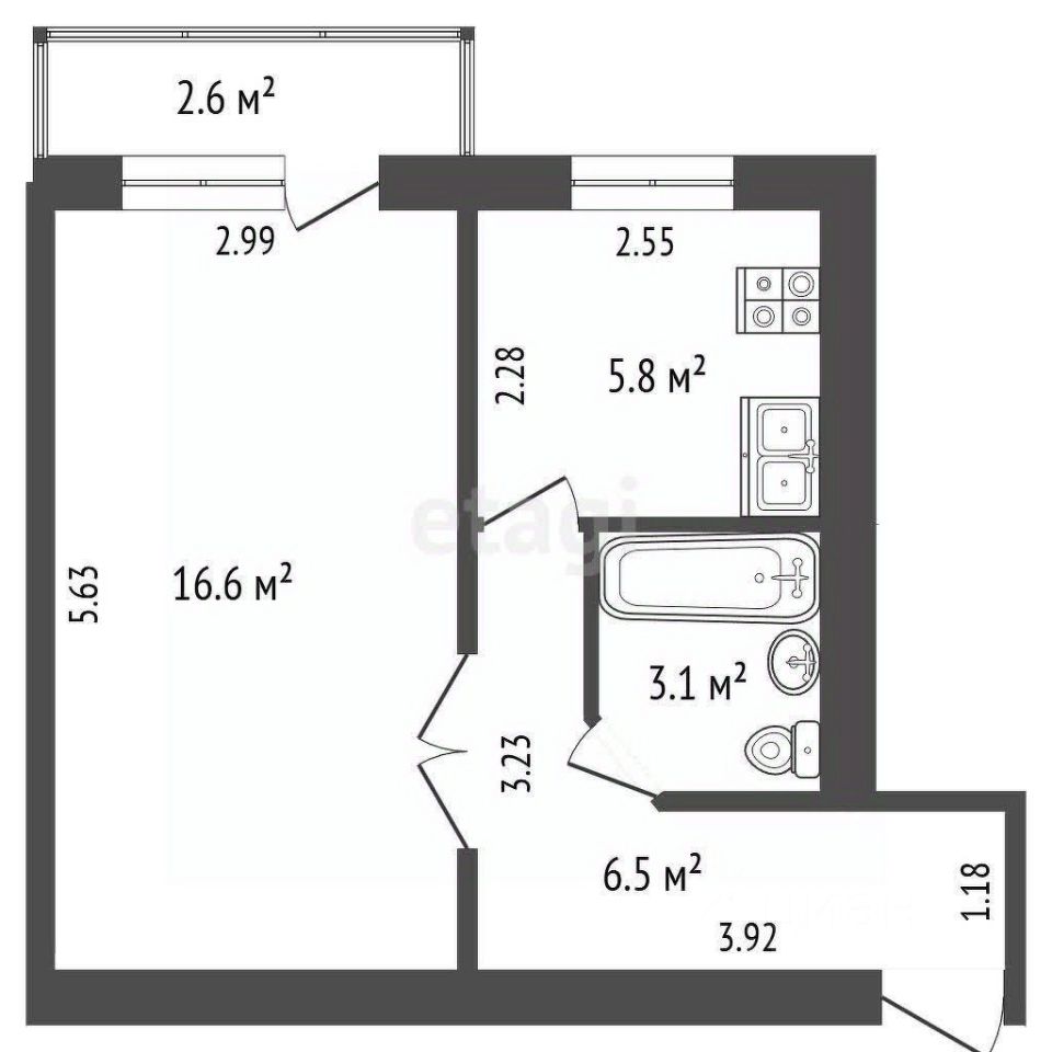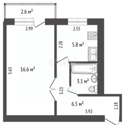 Общая/жилая/кухня: 32 / 16,6 / 5,8 м² Этаж: 2 из 5 Санузел: совмещённый Интернет: подключён Техника: кондиционер