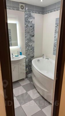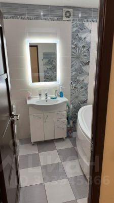 Совмещённый санузел обустроен удобной планировкой и стильной сантехникой.