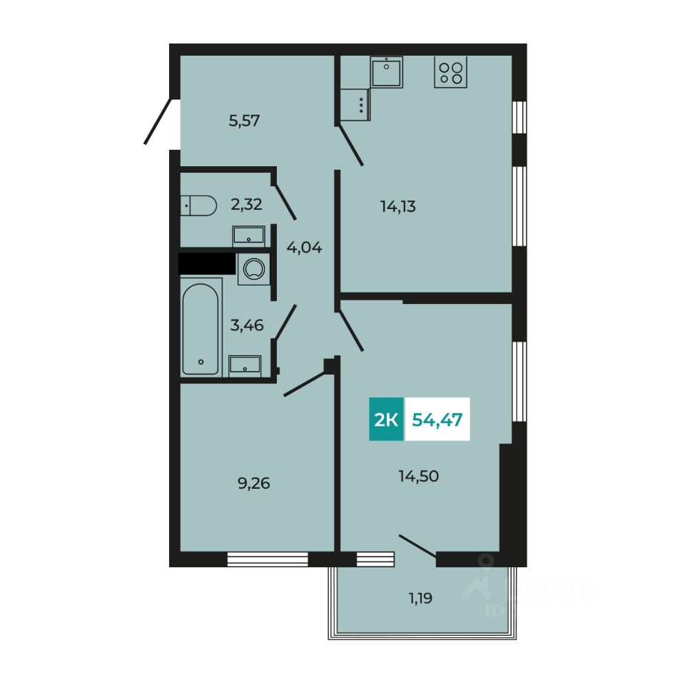 В продаже 2 - комнатная квартира площадью 54,47 кв м на 7 этаже от застройщика.
