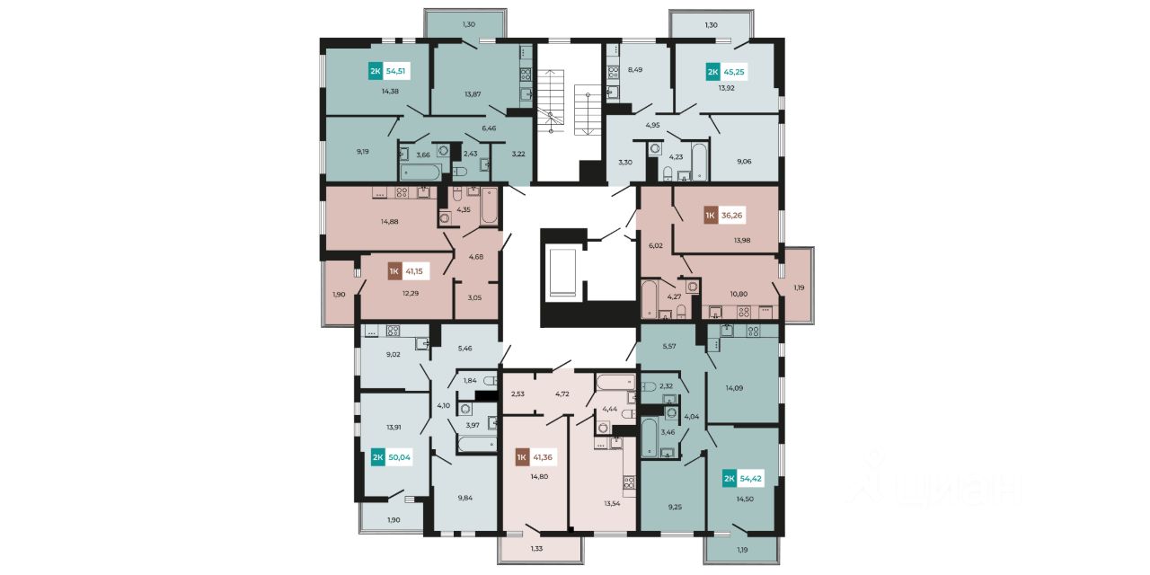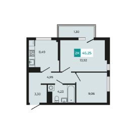 В продаже 2- комнатная квартира площадью 45,25 кв м на 6 этаже от застройщика.