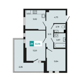 В продаже 2- комнатная квартира площадью 52,16 кв м на 1 этаже от застройщика. Уникальный формат - высокие потолки - 3,3м и просторная терраса с живой изгородью.