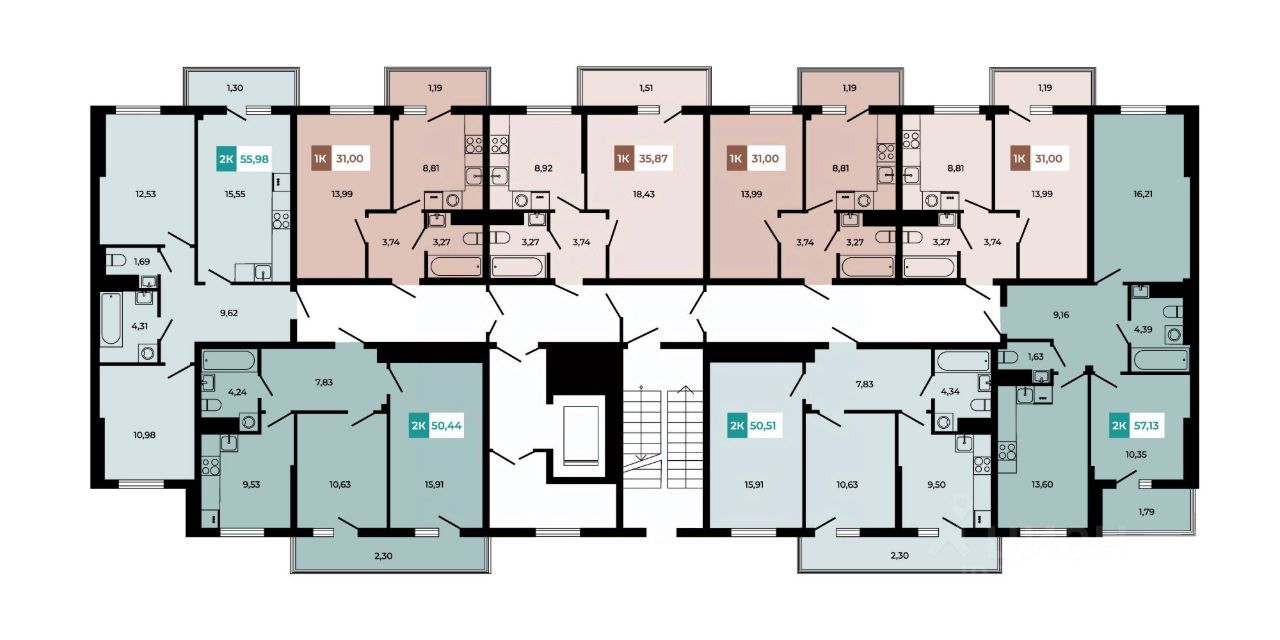 В продаже 2 -комнатная квартира площадью 50,51 кв м на 3 этаже от застройщика.