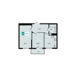 В продаже 2 -комнатная квартира площадью 49,54 кв м на 5 этаже от застройщика.