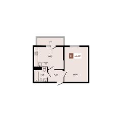 В продаже 1 -комнатная квартира площадью 42,9 кв м на 3 этаже от застройщика.