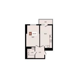 В продаже 1 -комнатная квартира площадью 41,86 кв м на 3 этаже от застройщика.