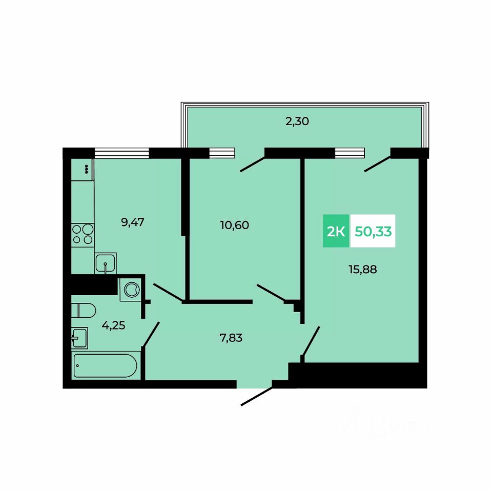 В продаже 2 -комнатная квартира площадью 50,33 кв м на 5 этаже от застройщика.
