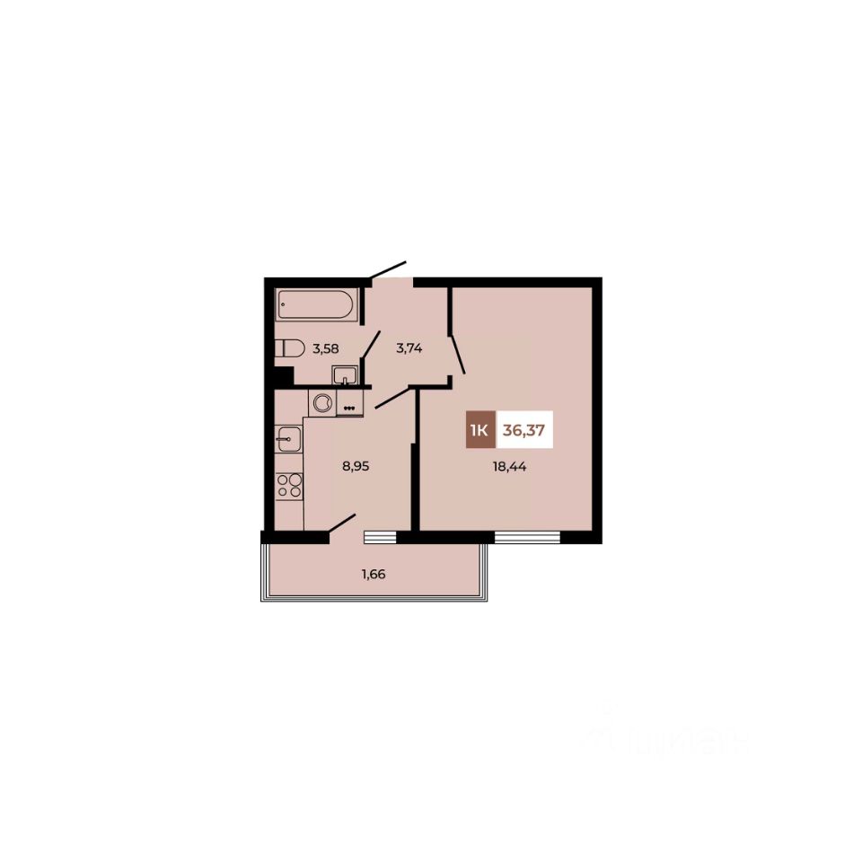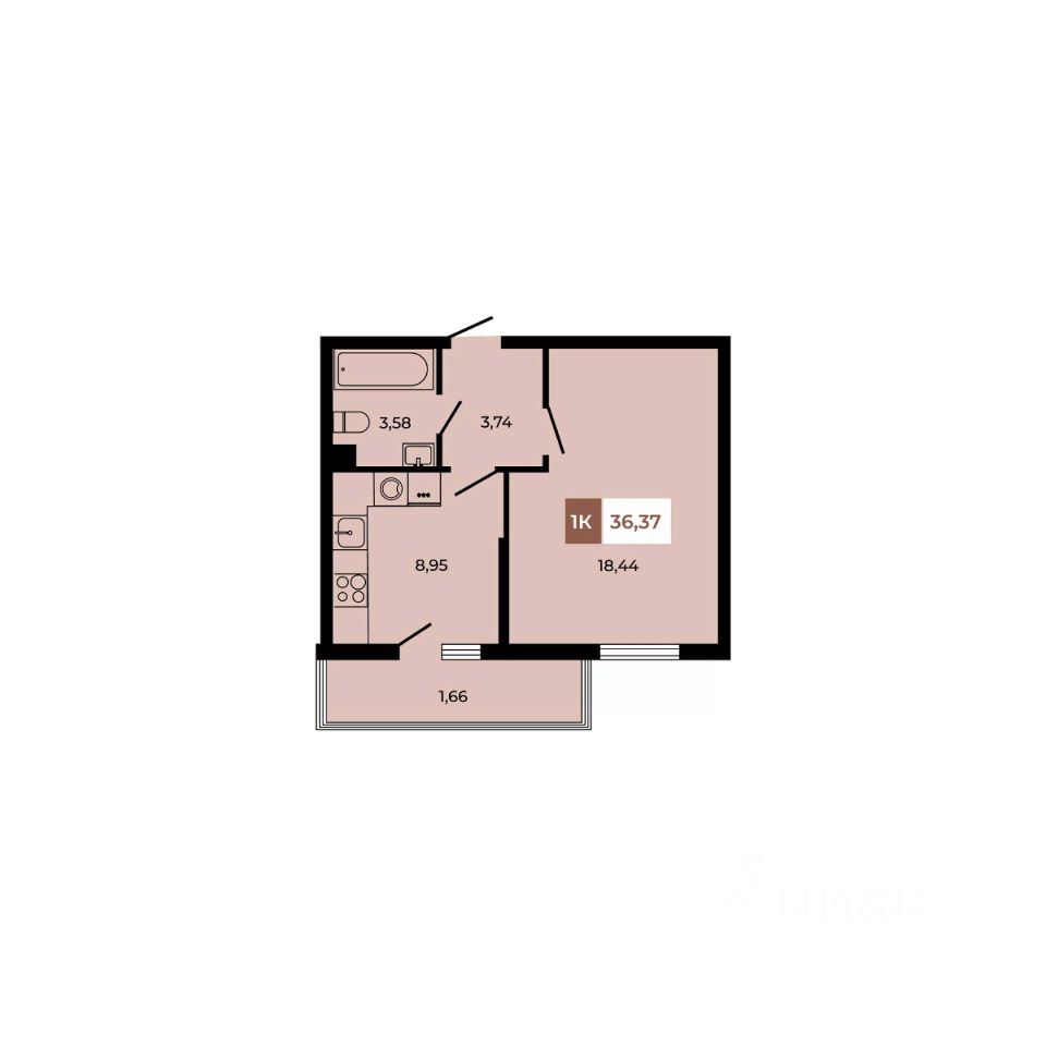 В продаже 1 -комнатная квартира площадью 36,37 кв м на 2 этаже от застройщика.
