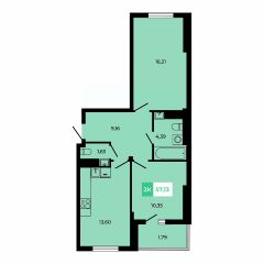 В продаже 2 - комнатная квартира площадью 57,13 кв м на 3 этаже от застройщика.