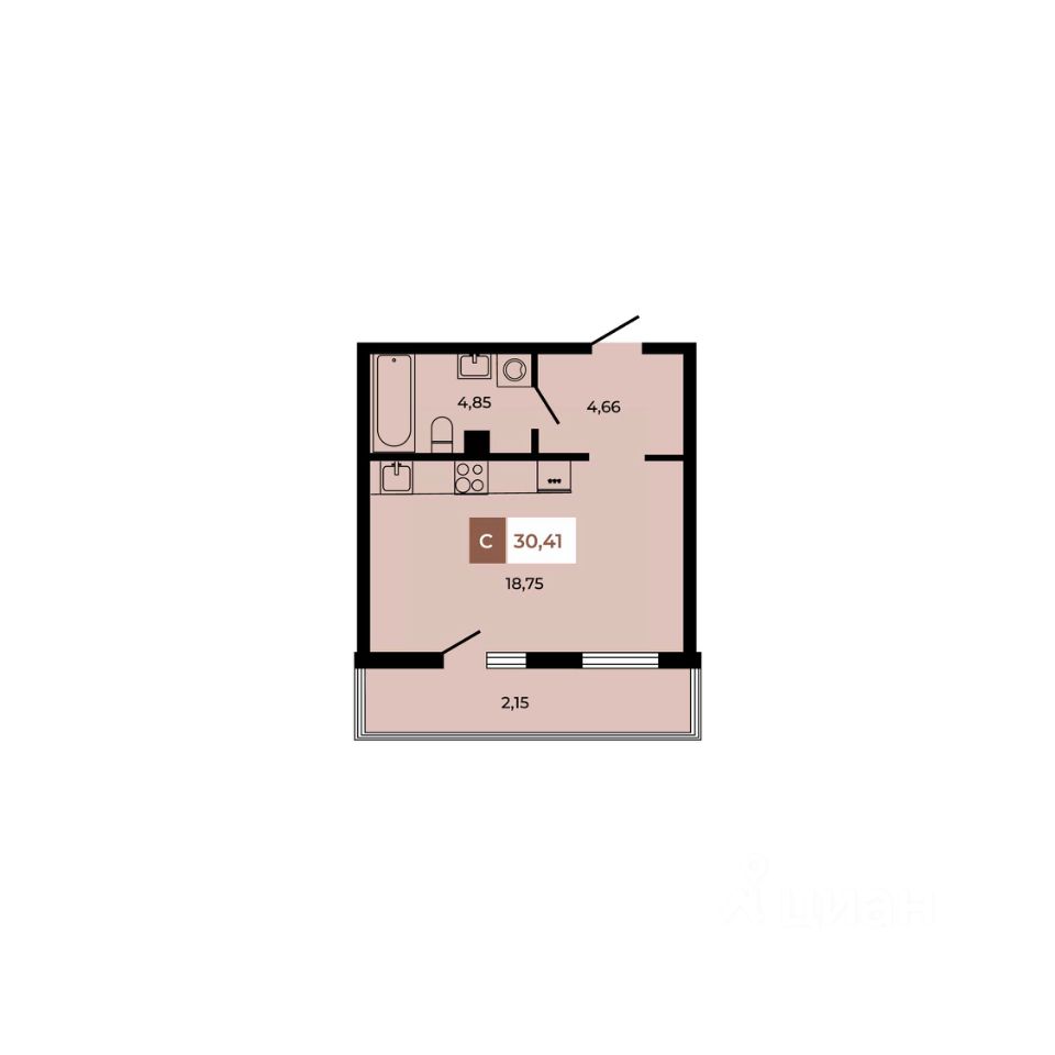 В продаже студия площадью 30,41 кв м на 2 этаже от застройщика.