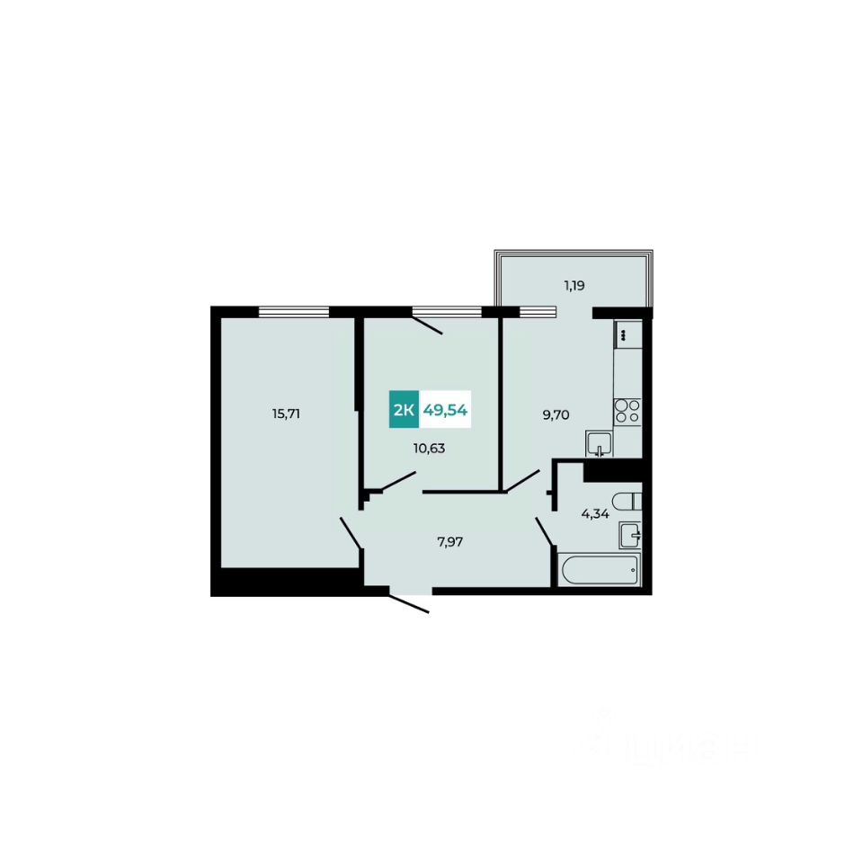 В продаже 2 - комнатная квартира площадью 49,54 кв м на 3 этаже от застройщика.