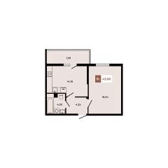 В продаже 1 - комнатная квартира площадью 43,66 кв м на 1 этаже от застройщика. Уникальный формат - высокие потолки - 3,3м и просторная терраса с живой изгородью.