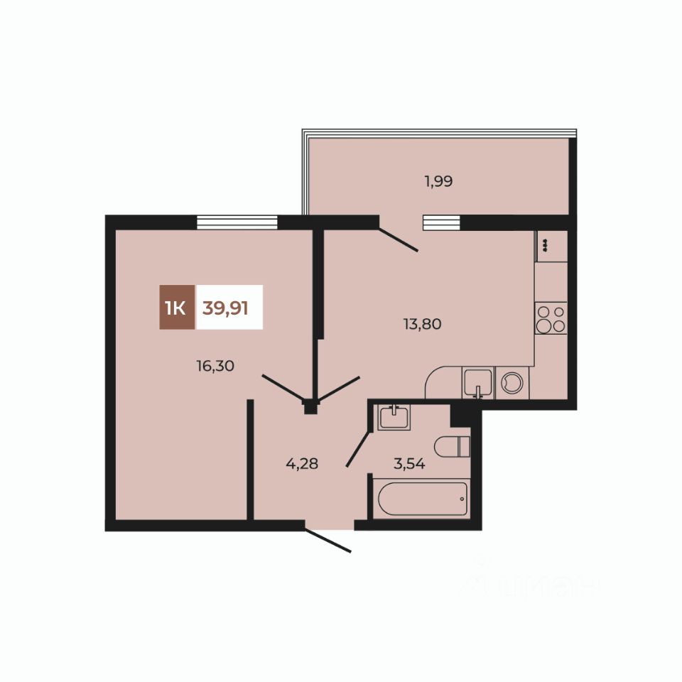 В продаже 1 - комнатная квартира площадью 39,91 кв м на 1 этаже от застройщика. Уникальный формат - высокие потолки - 3,3м и просторная терраса с живой изгородью.