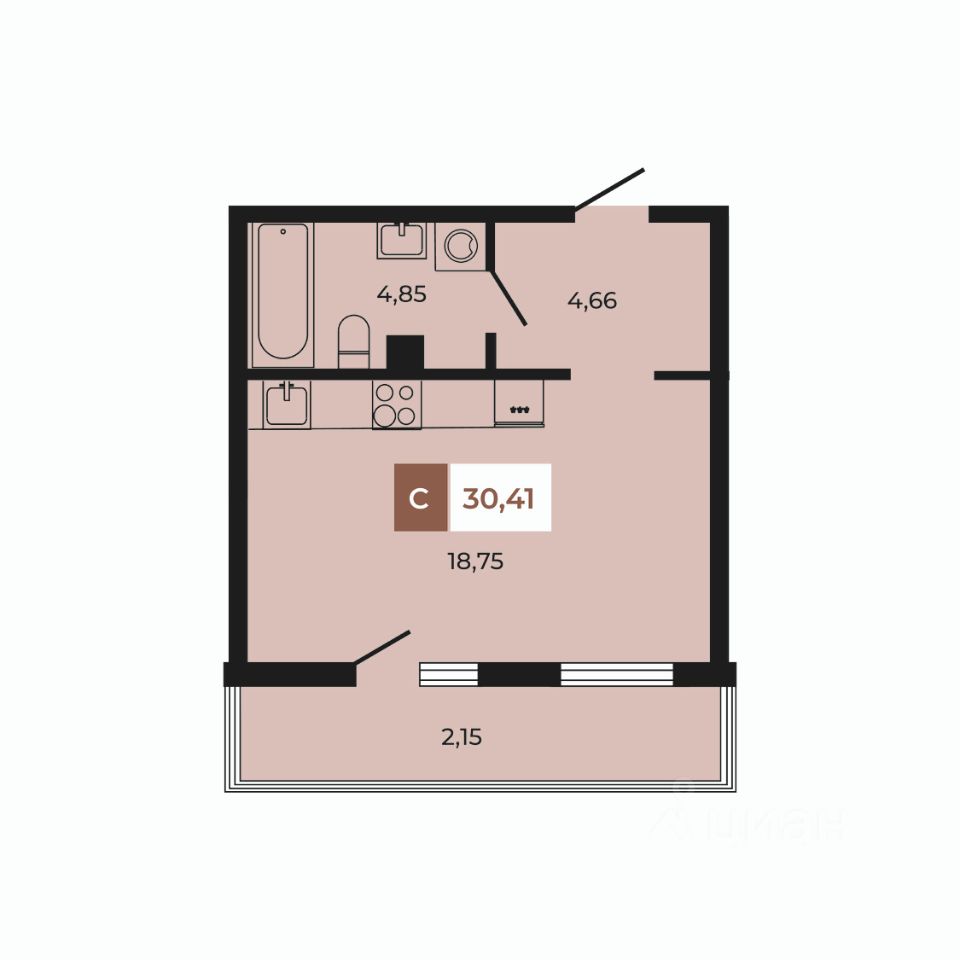 В продаже студия площадью 30,41 кв м на 2 этаже от застройщика.