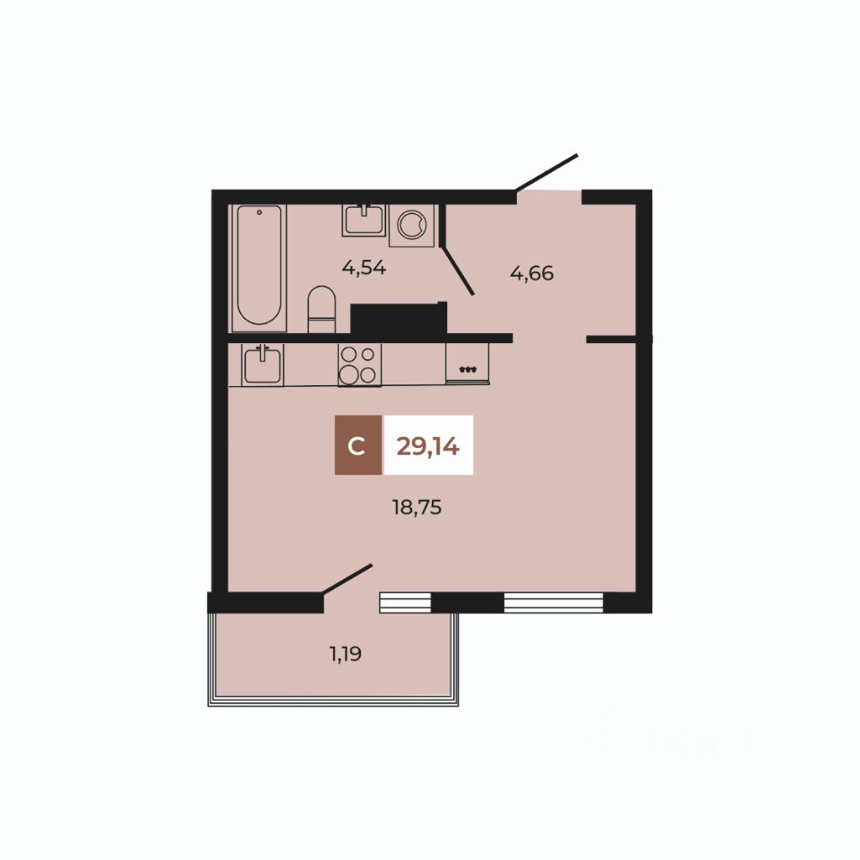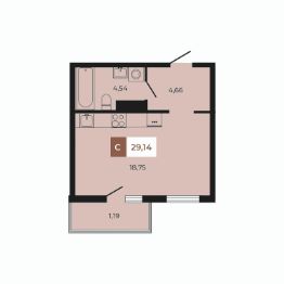 В продаже студия площадью 29,14 кв м на 4 этаже от застройщика.