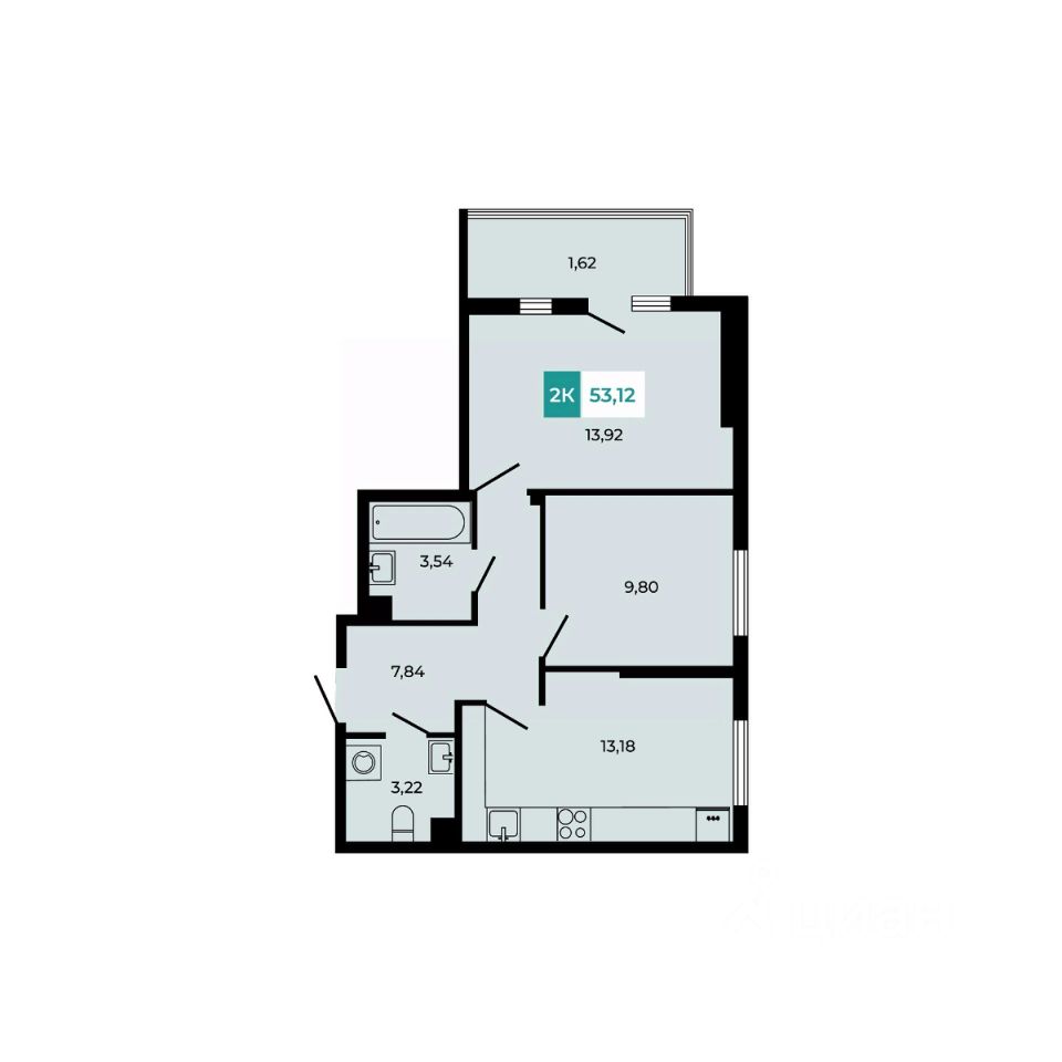 В продаже 2 - комнатная квартира площадью 53,12 кв м на 1 этаже от застройщика. Уникальный формат - высокие потолки - 3,3м и просторная терраса с живой изгородью.