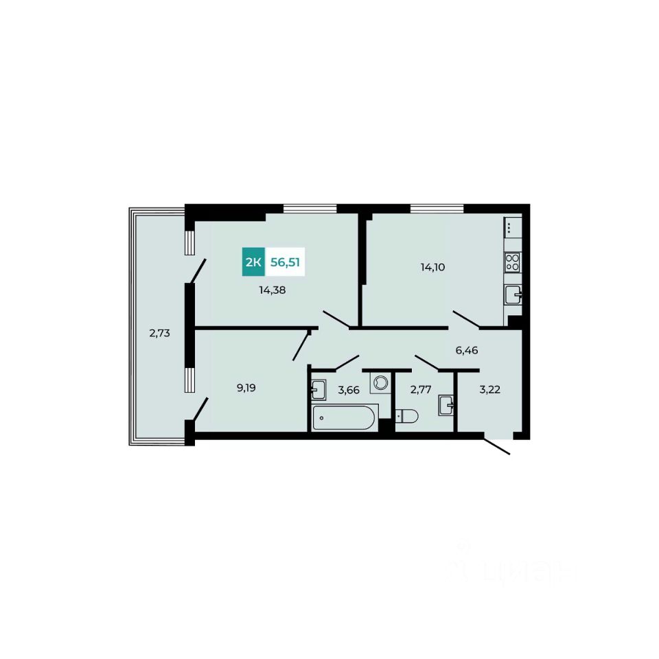В продаже 2 - комнатная квартира площадью 56,51 кв м на 1 этаже от застройщика. Уникальный формат - высокие потолки - 3,3м и просторная терраса с живой изгородью.