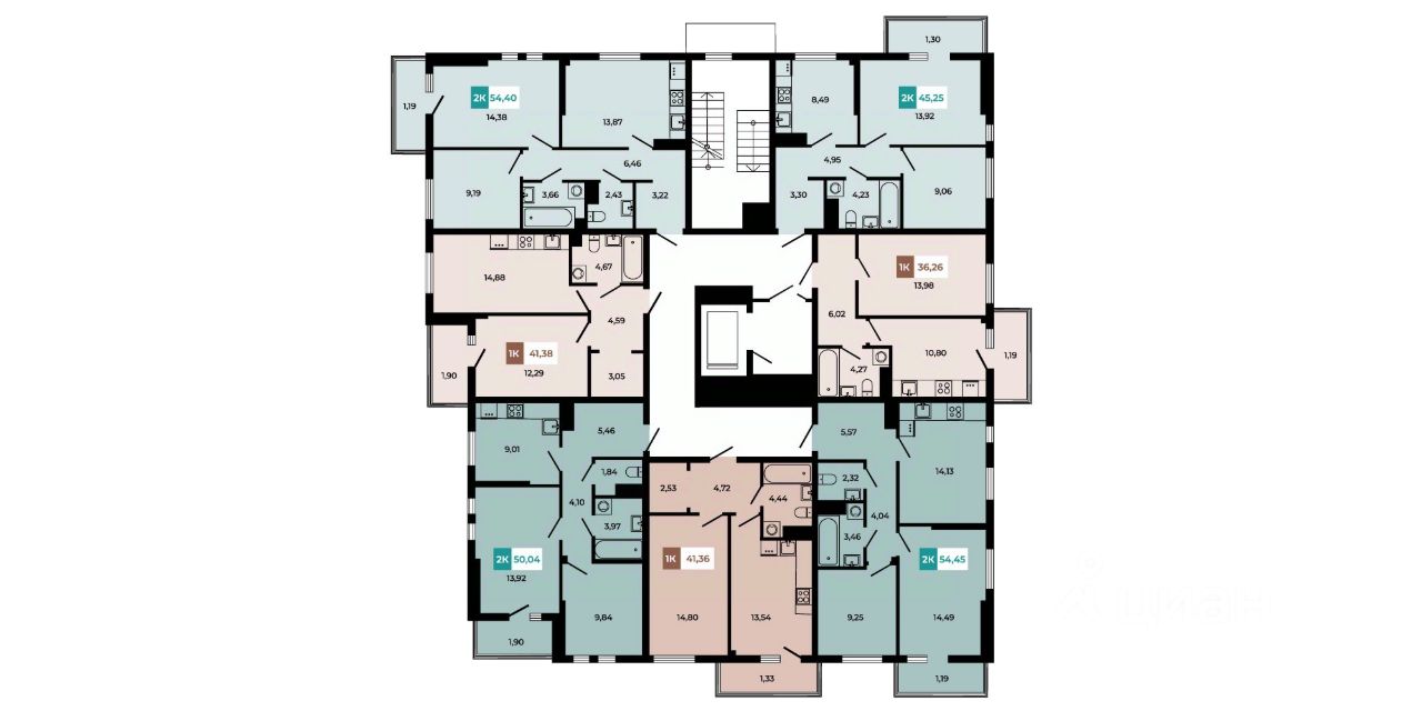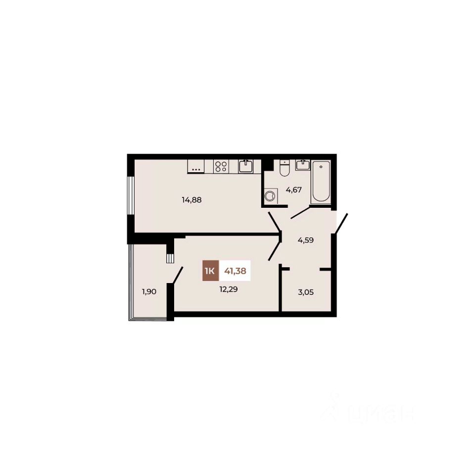 В продаже 1 - комнатная квартира площадью 41,38 кв м на 2 этаже от застройщика.