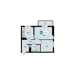 В продаже 2 - комнатная квартира площадью 45,25 кв м на 3 этаже от застройщика.