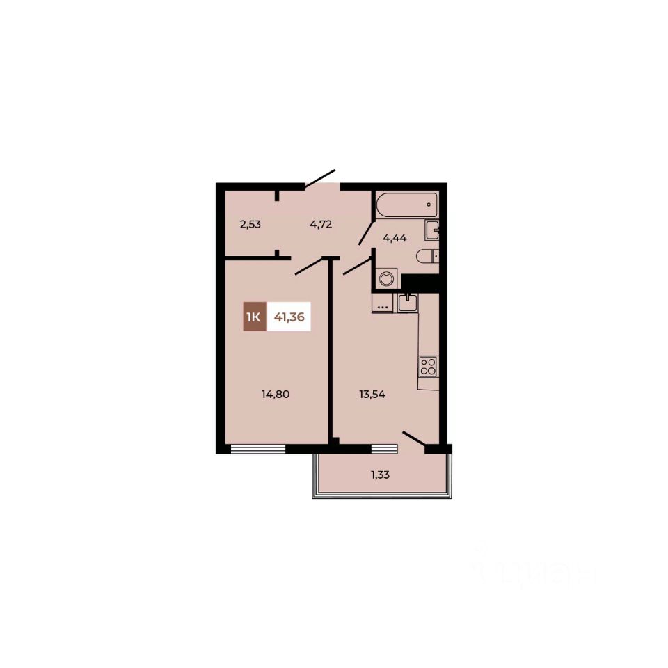 В продаже 1 - комнатная квартира площадью 41,36 кв м на 4 этаже от застройщика.
