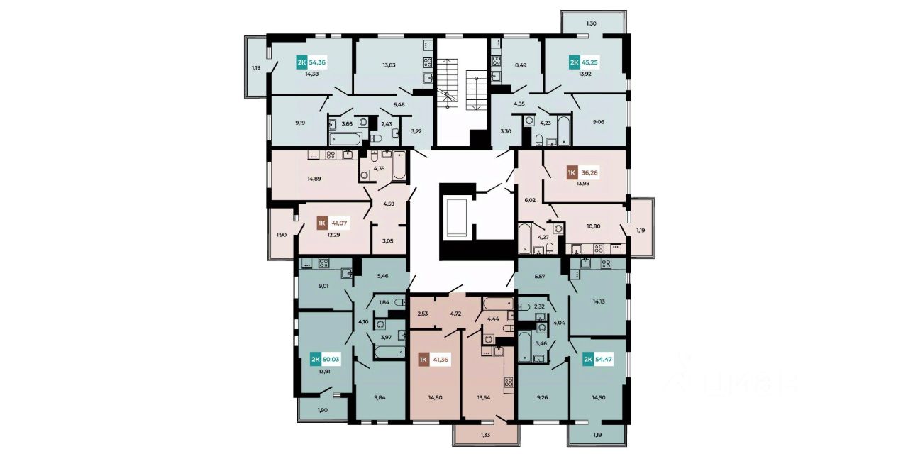 В продаже 2 - комнатная квартира площадью 54,47 кв м на 7 этаже от застройщика.