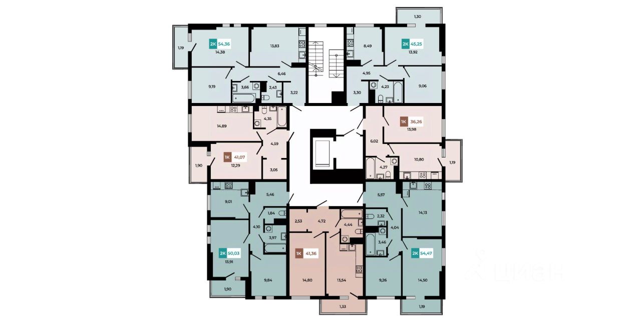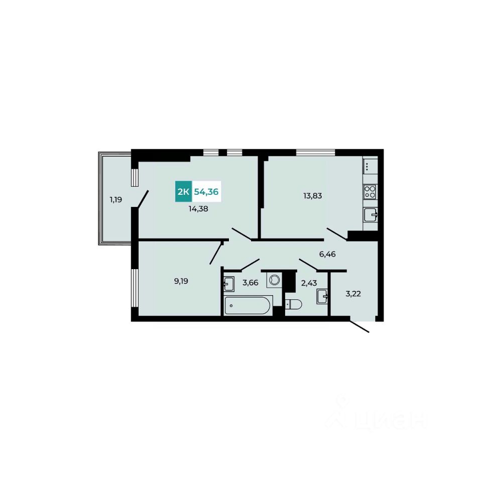 В продаже 2 - комнатная квартира площадью 54,36 кв м на 8 этаже от застройщика.