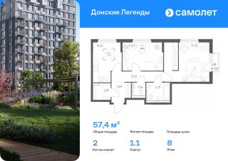 Строим кварталы для жизни с заботой о будущем. Предлагается 2-комнатная квартира комфорт-класса 57,37 кв.м в корпусе 1.1 на 8 этаже, в ЖК "Донские Легенды"