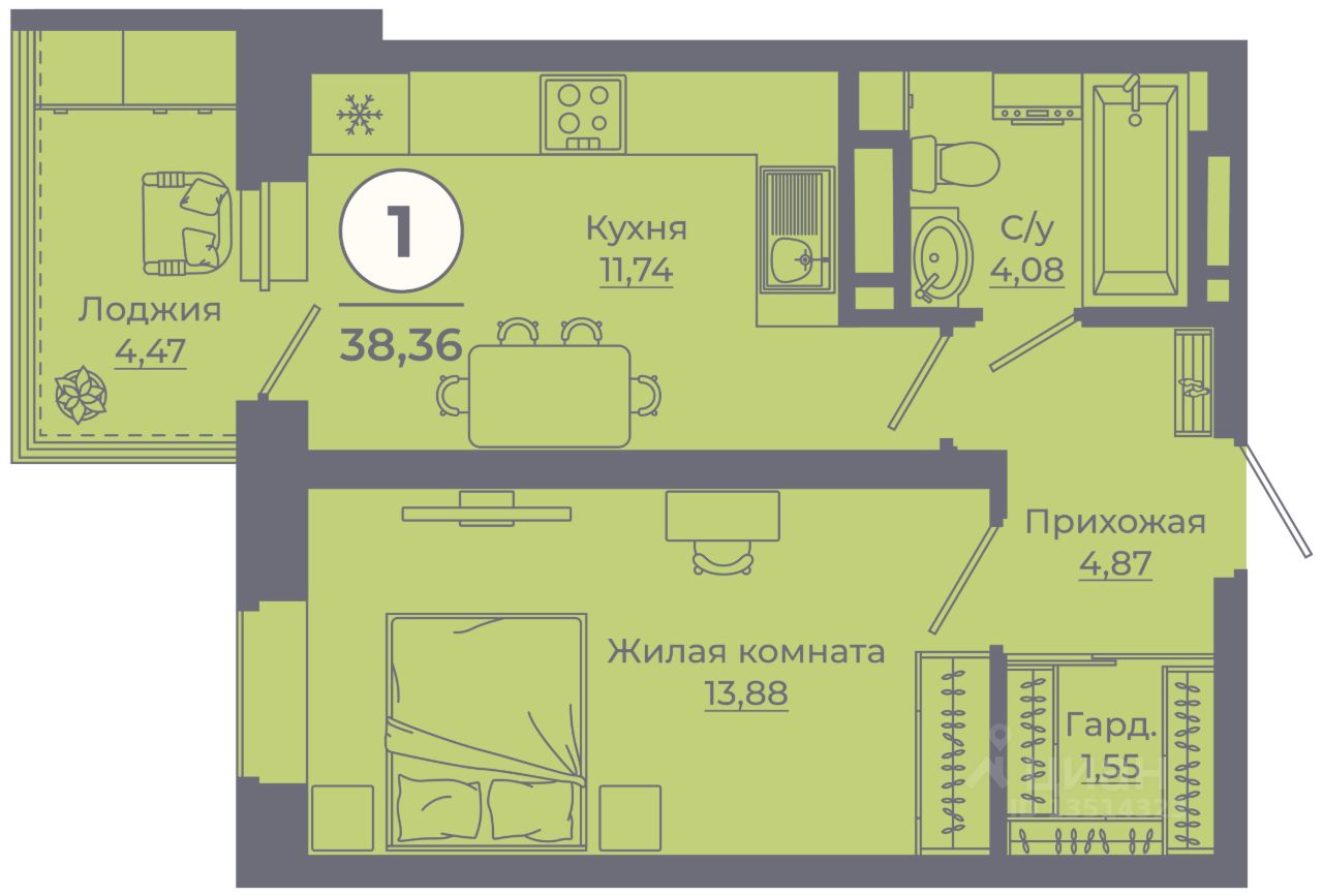 Общая площадь38,02 м²