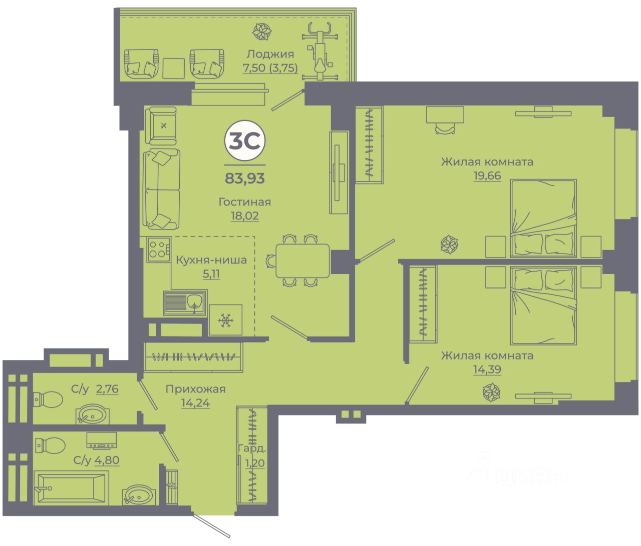 Общая площадь84,27 м²