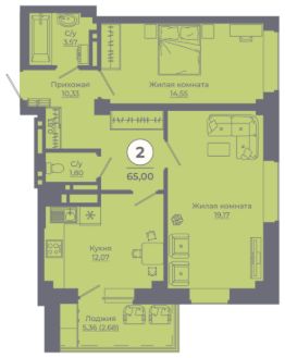Общая площадь64,53 м²