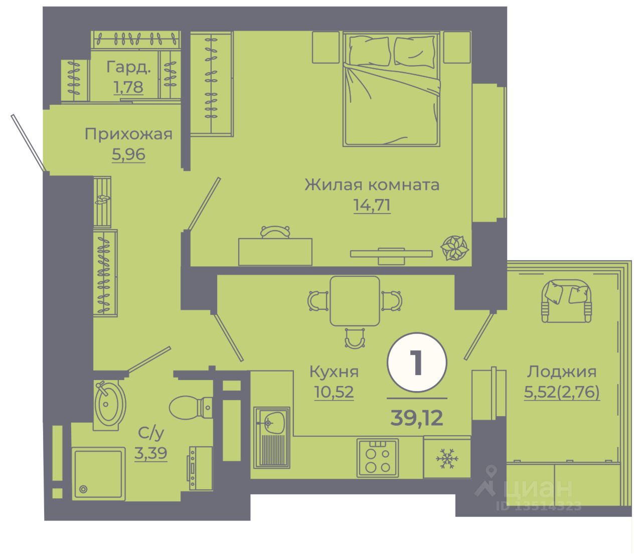 Общая площадь39,67 м²