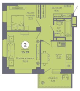 Общая площадь55,04 м²