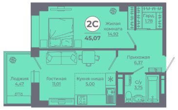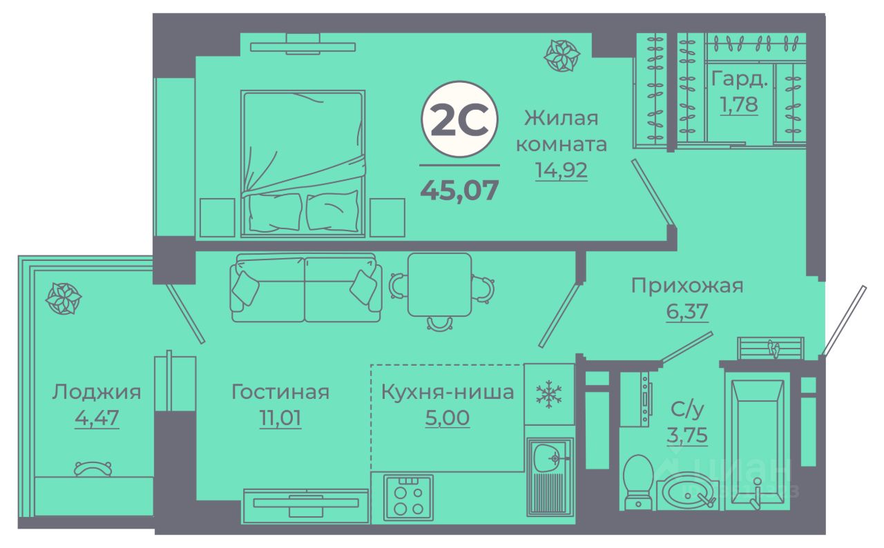 Общая площадь44,97 м²