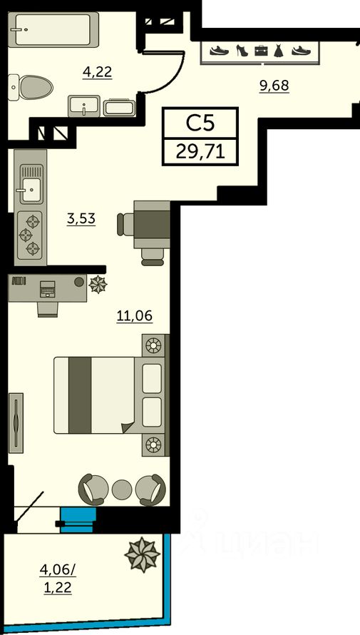 Продаётся студия в строящемся доме (Литер 8), срок сдачи: IV-кв. 2025, общей площадью 29.24 кв.м., на 20 этаже. Собственный детский сад!