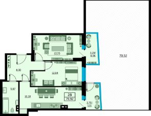 Продаётся 2-комнатная квартира в сданном доме (Ларина, 45с2 (Литер 2)), срок сдачи: I-кв. 2022, общей площадью 79.9 кв.м., на 3 этаже. Собственный детский сад!