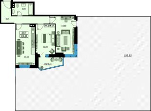 Продаётся 2-комнатная квартира в строящемся доме (Литер 1), срок сдачи: IV-кв. 2025, общей площадью 116.31 кв.м., на 2 этаже. Собственный детский сад!