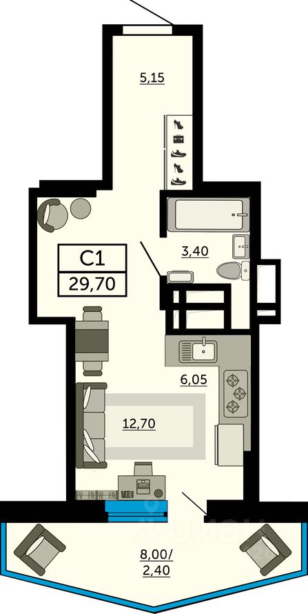 29,7 м²