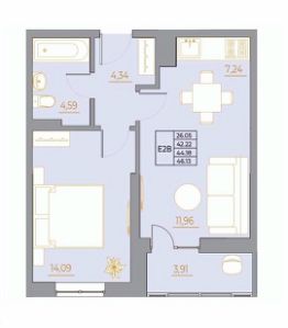 •Улучшенная черновая отделка: выполнена стяжка пола и установлены межкомнатные перегородки