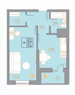 •1 изолированная спальня 17 кв. м