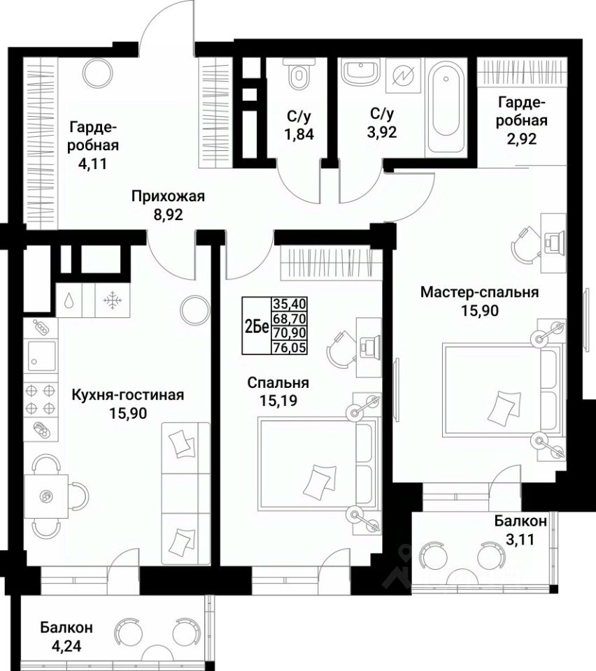 — 2 большие спальни